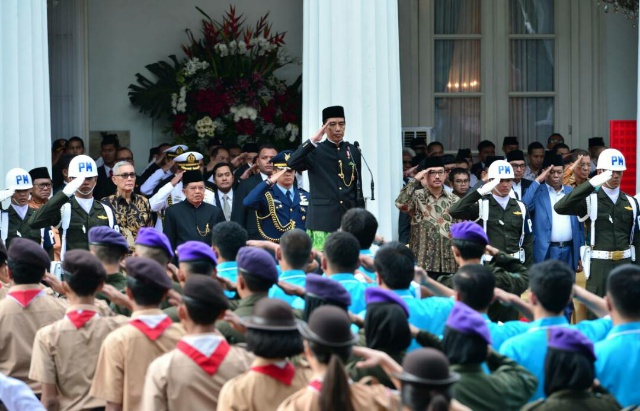 Mengakhiri sambutannya itu, Presiden turut meminta kewaspadaan seluruh elemen bangsa terhadap segala bentuk pemahaman dan gerakan yang tidak sejalan dengan Pancasila. “Pemerintah pasti bertindak tegas terhadap organisasi dan gerakan yang anti pancasila, yang anti Undang-Undang Dasar 1945, yang anti NKRI dan yang anti Bhinneka Tunggal Ika,” ucap Presiden.