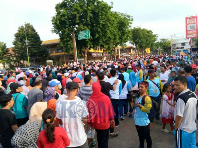 Ribuan peserta jalan sehat spektakuler diberangkatkan dari depan Masjid Agung menuju simpang empang empat Jl. KH Mansyur atau di sebelah selatan pasar minggu. Para lansia dan penyandang disabilitas berada di barisan paling depan. Mereka tampak antusias.