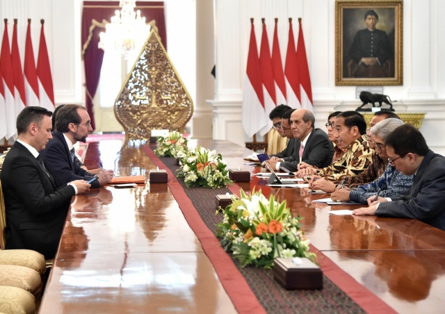 JAKARTA, Kompasmadura.com – Presiden Joko Widodo hari ini, Selasa, 6 Februari 2018, menerima kunjungan kehormatan Komisaris Tinggi Hak Asasi Manusia (HAM) Perserikatan Bangsa-Bangsa (PBB) Zeid Ra’ad Al Hussein beserta _Chief of Asia Pacific and Middle East Field Operations, United Nations_ Francesco Motta dan _Official Spokesperson of the High Commissioner for Human Rights, United Nations_ Ravina Shamdasani di Istana Merdeka Jakarta.