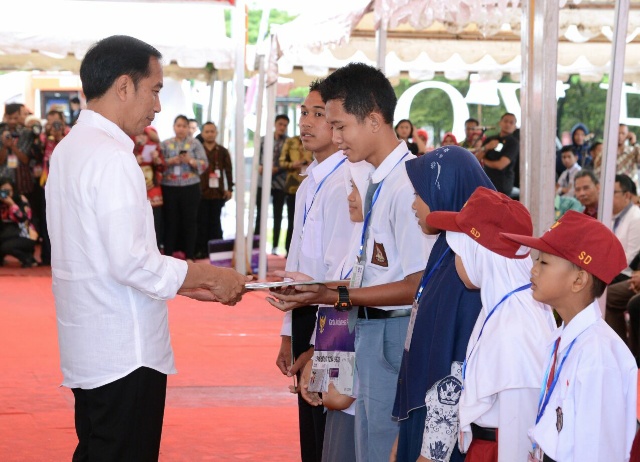 Selain itu, Presiden juga menyerahkan 1.690 Kartu Indonesia Pintar (KIP) kepada para siswa dari beragam jenjang pendidikan. Mulai dari tingkat SD, SMP, SMA, hingga program kesetaraan. Kartu tersebut diberikan pemerintah sebagai upaya untuk memberikan jaminan akses pendidikan yang layak bagi pelajar di seluruh Tanah Air.