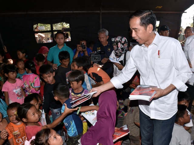 Dari SPN, Kepala Negara dan Ibu Iriana bersama rombongan menuju lokasi pengungsian di Lapangan Madayin, Desa Madayin, Kecamatan Sambelia, Kabupaten Lombok Timur.
