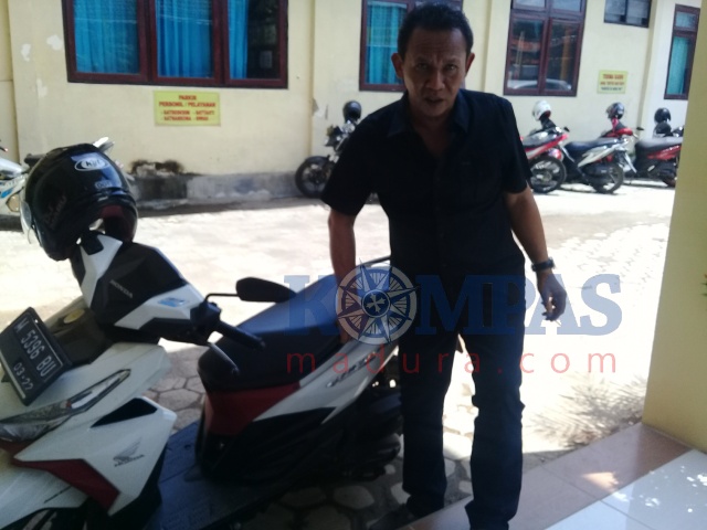 PAMEKASAN, kompasmadura.com – Kasat reskrim polres pamekasan memperagai pencurian uang dalam jok motor senilai 42 juta di halaman kapolres Pamekasan. Rabu (14/11/2018).