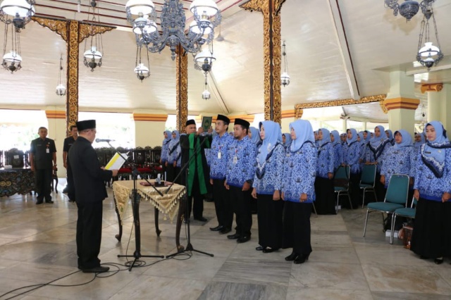 SUMENEP, Kompasmadura.com – Sebanyak 250 orang Calon Pegawai Negeri Sipil (CPNS), disumpah dan diberi Surat Keputusan (SK) Pengangkatan, di Pendopo Agung Keraton Sumenep Kamis, (15/11/2018).
