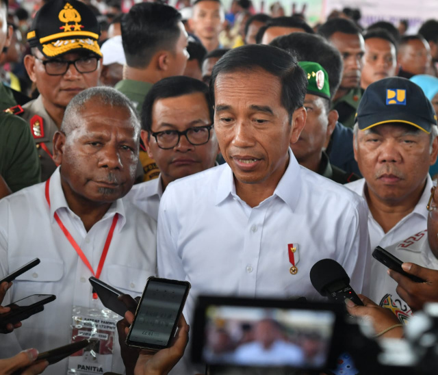 JAYAPURA, Kompasmadura.com – Setibanya di Bandara Sentani, Jayapura, Provinsi Papua, pada Senin siang, 1 April 2019, Presiden Joko Widodo beserta Ibu Negara Iriana Joko Widodo langsung menyaksikan penandatanganan nota kesepakatan antara Badan Nasional Penanggulangan Bencana (BNPB) dengan sejumlah pihak terkait mengenai pemulihan kawasan cagar alam Pegunungan Cycloop, Danau Sentani, dan daerah aliran Sungai Sentani Tami.