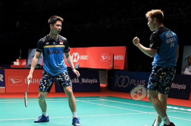 KUALA LUMPUR, Kompasmadura.com – Pasangan ganda putra Indonesia, Marcus Fernaldi Giedon/Kevin Sanjaya Sukamuljo, melaju ke babak 16 besar Malaysia Open 2019 usai menumbangkan wakil Taiwan, Lee Yang/Wang Chi-Lin. Tanpa kesulitan berarti, Marcus/Kevin memenangkan laga dua gim langsung dengan skor 21-13 dan 21-12.