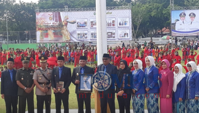 SAMPANG, kompasmadura.com – Dinas Pendidikan (Disdik) Kabupaten Sampang menggelar serangkaian acara dalam peringati Hari Pendidikan Nasional (Hardiknas) 2019. Salah satunya yaitu Tari Kolosal Matale Sato’or di Lapangan Wijaya Sampang, Kamis (2/5/2019).