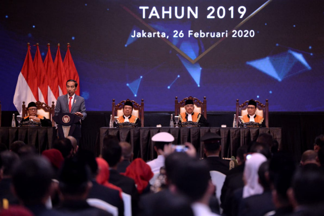JAKARTA, Kompasmadura.com – Presiden Joko Widodo hadir dalam Sidang Pleno Istimewa Laporan Tahunan Mahkamah Agung (MA) Tahun 2019 yang digelar di Jakarta Convention Center pada Rabu, 26 Februari 2020.