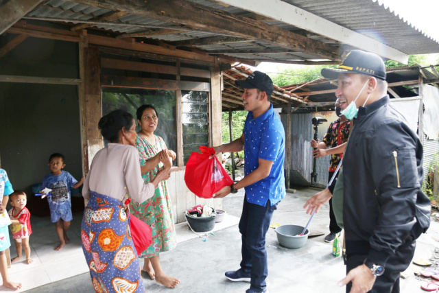 Kedua pucuk pimpinan daerah itu membawa sembilan pokok makanan dari Pendopo Bupati dengan kendaraan truk. Setidaknya ada 250 sembako yang dibagikan kepada masyarakat miskin.