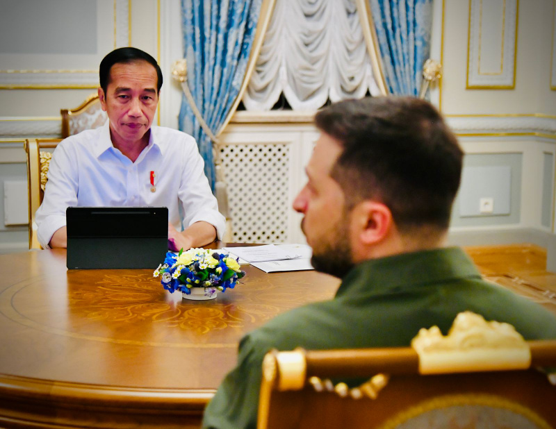 KYIV, Kompasmadura.com – Presiden Joko Widodo tiba di Istana Maryinsky, Kyiv disambut oleh Presiden Ukraina Volodymyr Zelenskyy di pintu masuk Istana pada Rabu sore sekitar pukul 15.00 waktu setempat, 29 Juni 2022.